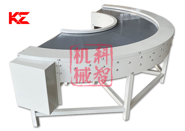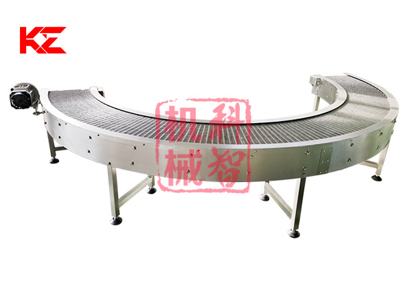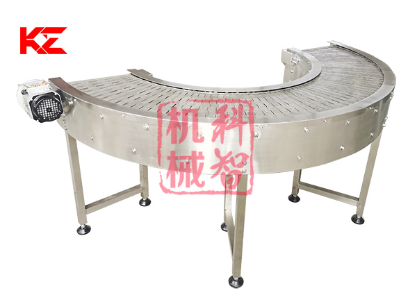 轉彎輸送機采用的形式有:網帶轉彎輸送機、鏈板式轉彎輸送機、皮帶式轉彎輸送機、鏈桿式轉彎輸送機、塑料模塊式轉彎輸送機等。轉彎角度有45度、90度、180度等等。轉彎食品輸送機的寬度和轉彎半徑均可根據需求定做。